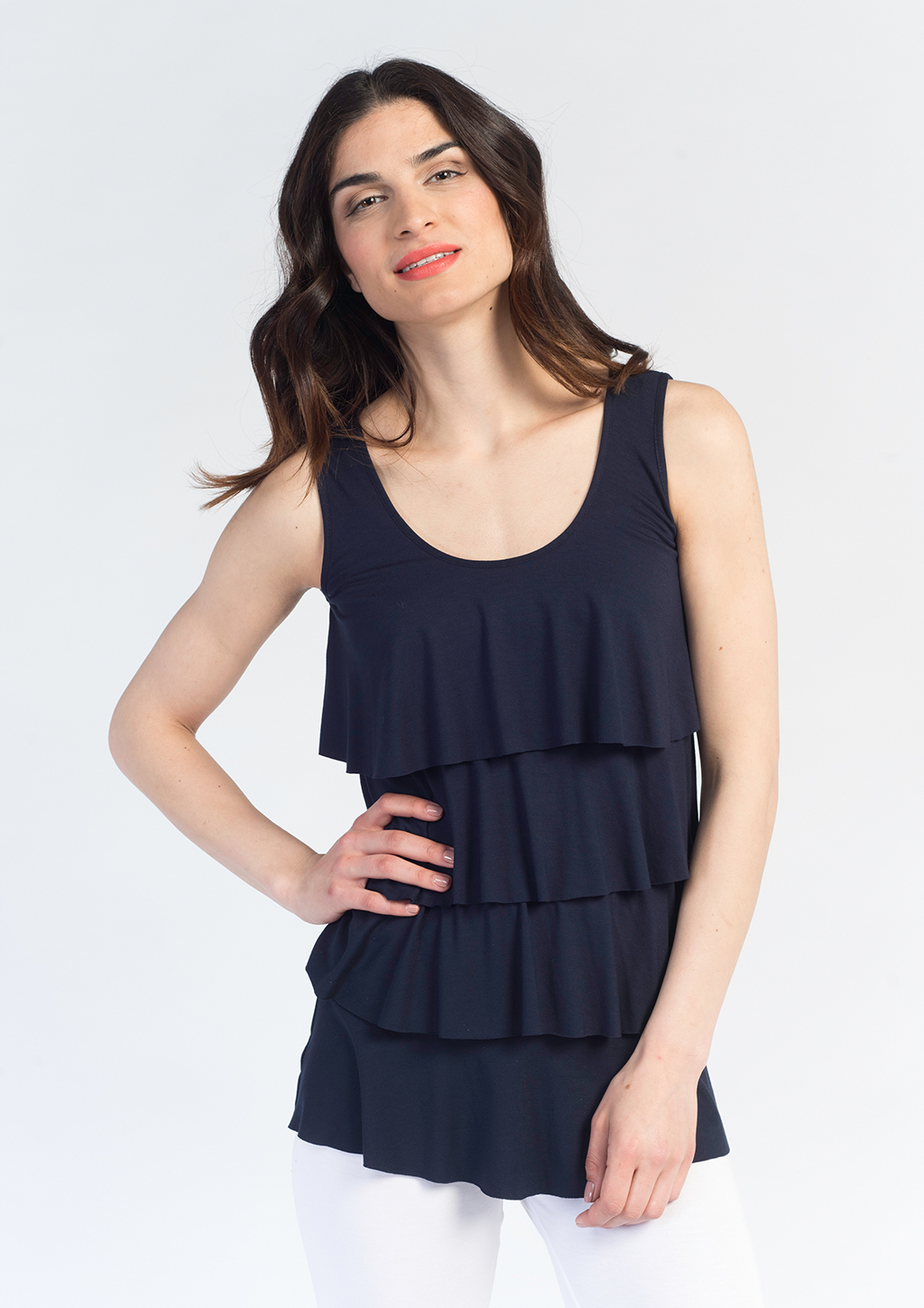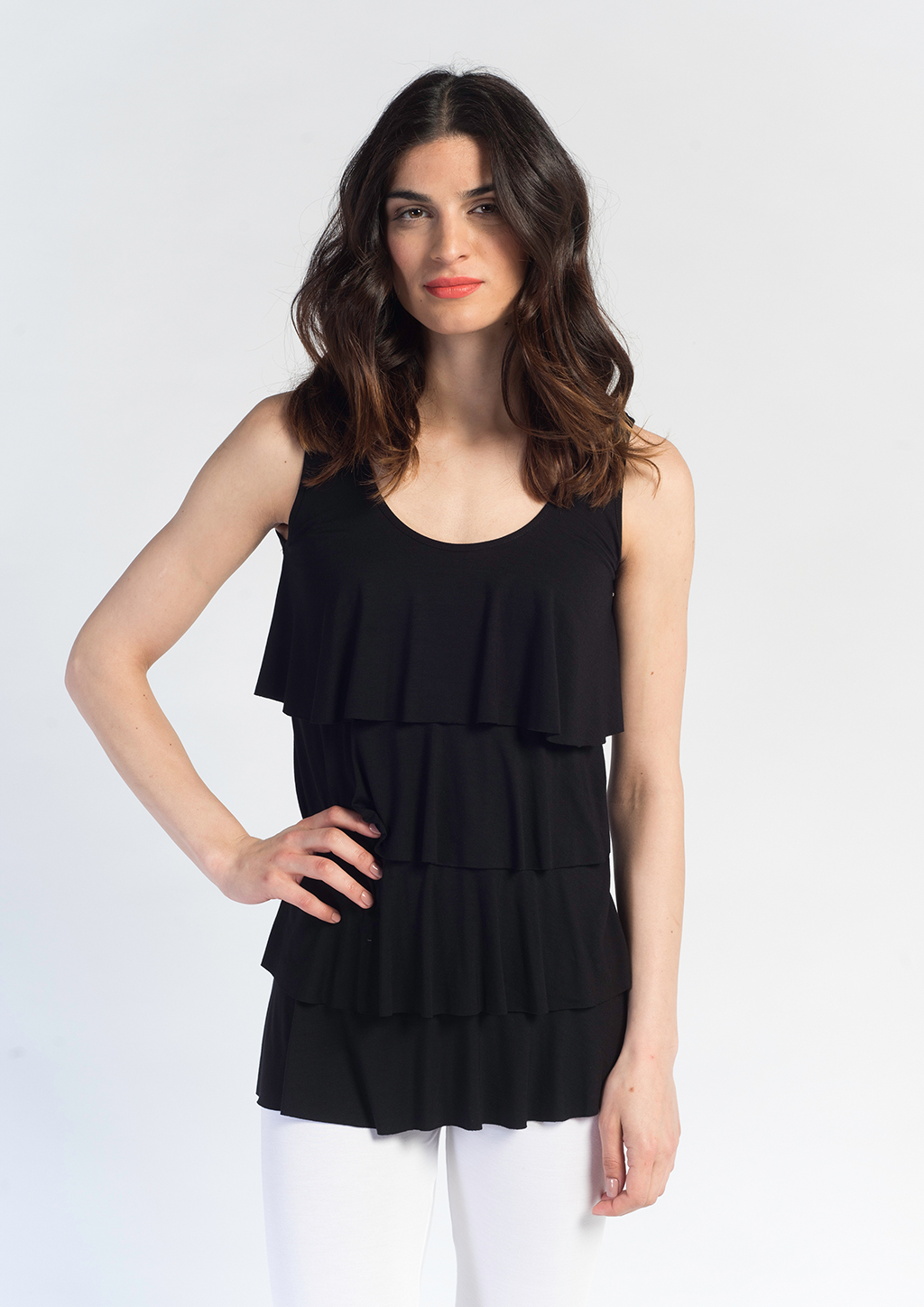 Sleeveless Scoop Neck 4 Layer at Front Loose Fit Model Height: 5ft 9in Wears Size: 10